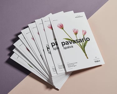 Spauda: spalvota, vienspalvė, su papildomais efektais (folijavimas, lakavimas, reljefas)